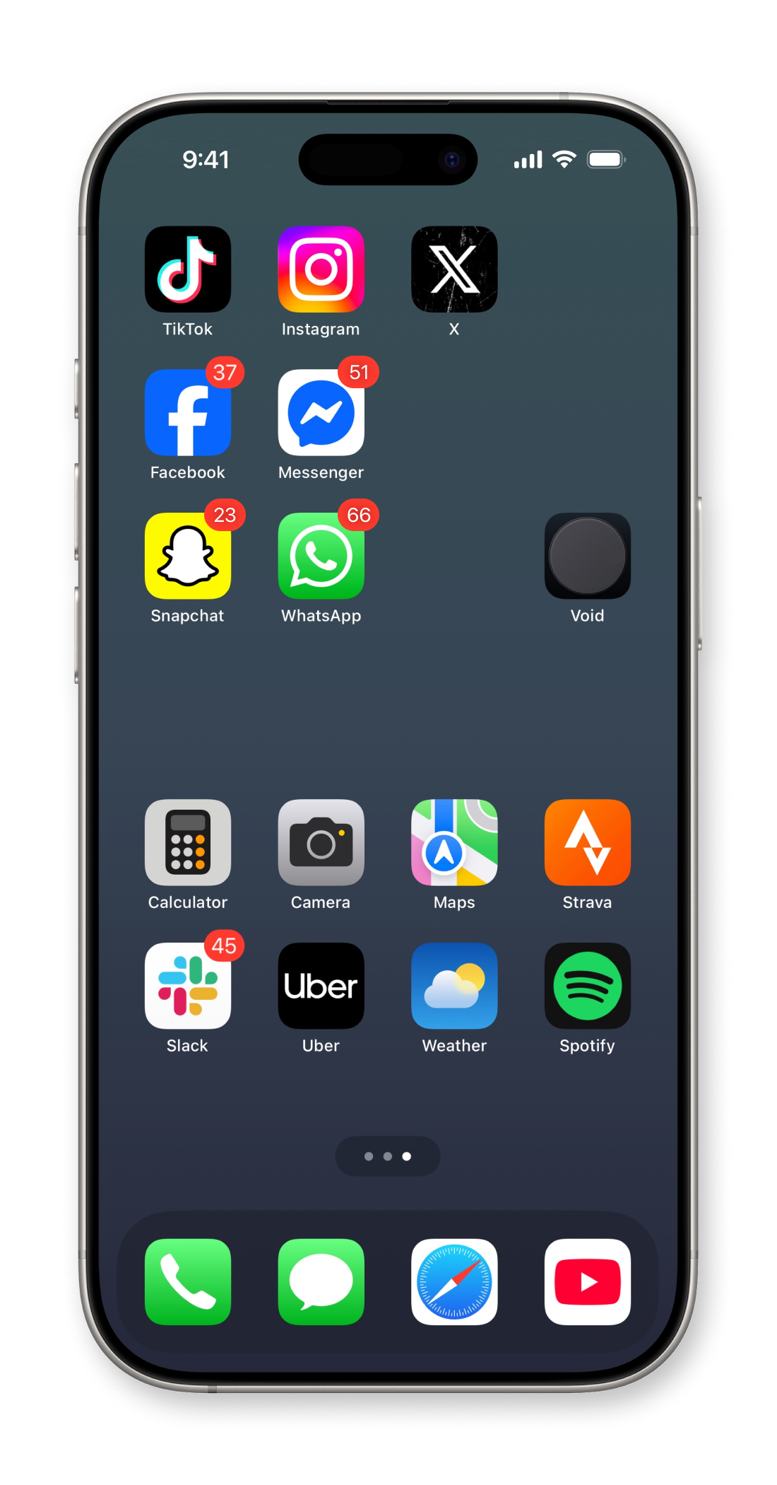 To curb phone addiction, we found that a physical barrier is key. Unlike standard app blockers, which are easily bypassed, Void creates real separation, making it harder to impulsively reach for your phone.